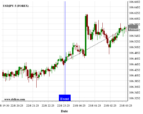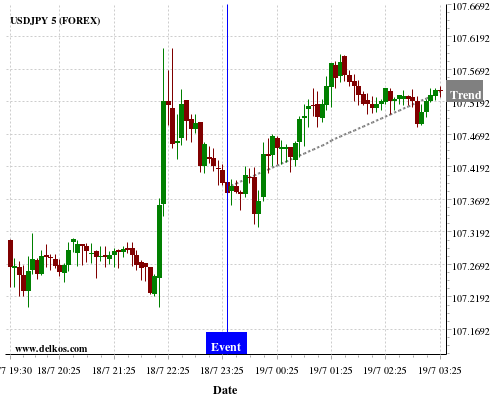 这个可能性是根据最近12次公布JP Inflation Rate YoY数据得出的,12次中有6次真实数据等于专家预期,这其中有4次导致USDJPY上涨。