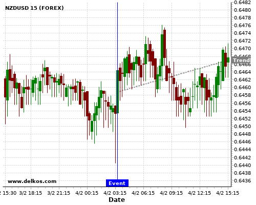 如果该数据等于专家预期,那么NZDUSD在消息公布之后的四小时内,将有72.72%的可能性会上涨。
