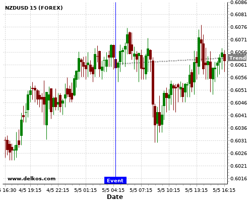 这个可能性是根据最近12次公布AU RBA Interest Rate Decision数据得出的,12次中有11次真实数据等于专家预期,这其中有8次导致NZDUSD上涨。