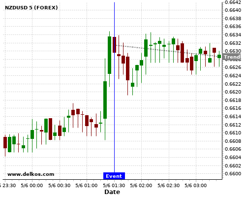 如果该数据小于专家预期,那么NZDUSD在消息公布之后的四小时内,将有83.33%的可能性会下跌。