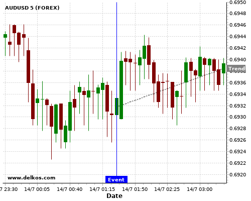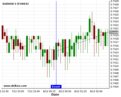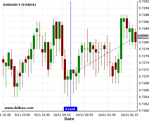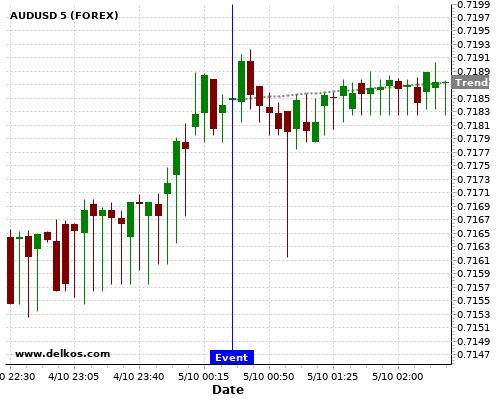 如果该数据大于专家预期,那么AUDUSD在消息公布之后的四小时内,将有87.5%的可能性会上涨。