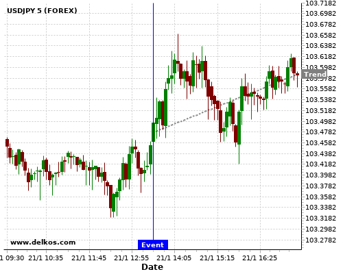 如果该数据小于专家预期,那么USDJPY在消息公布之后的四小时内,将有83.33%的可能性会上涨。