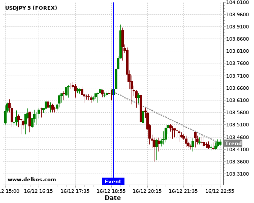 这个可能性是根据最近12次公布US Fed Interest Rate Decision数据得出的,12次中有12次真实数据等于专家预期,这其中有9次导致USDJPY下跌。