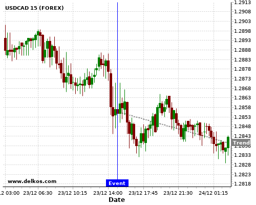 这个可能性是根据最近12次公布US New Home Sales数据得出的,12次中有11次真实数据大于专家预期,这其中有8次导致USDCAD下跌。