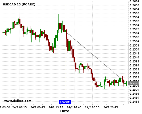 如果该数据大于专家预期,那么USDCAD在消息公布之后的四小时内,将有72.72%的可能性会下跌。