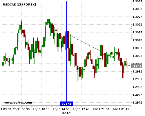 这个可能性是根据最近12次公布US New Home Sales数据得出的,12次中有11次真实数据大于专家预期,这其中有8次导致USDCAD下跌。