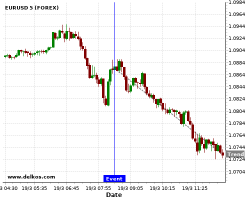 这个可能性是根据最近12次公布CH SNB Interest Rate Decision数据得出的,12次中有12次真实数据等于专家预期,这其中有9次导致EURUSD下跌。