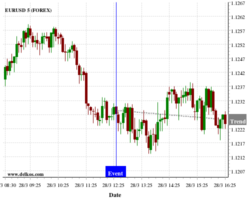 如果该数据小于专家预期,那么EURUSD在消息公布之后的四小时内,将有75%的可能性会下跌。