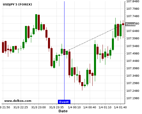如果该数据大于专家预期,那么USDJPY在消息公布之后的四小时内,将有75%的可能性会上涨。