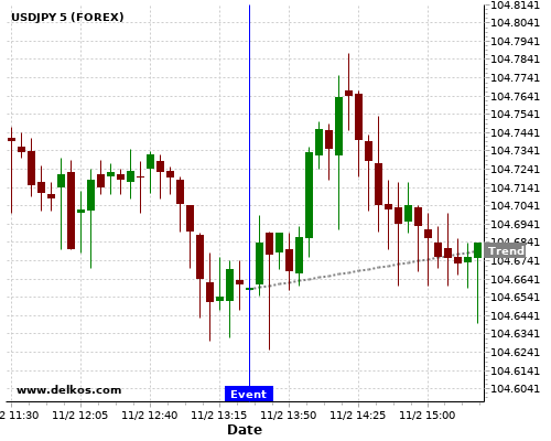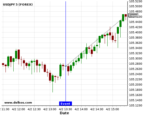 如果该数据小于专家预期,那么USDJPY在消息公布之后的四小时内,将有72.72%的可能性会上涨。