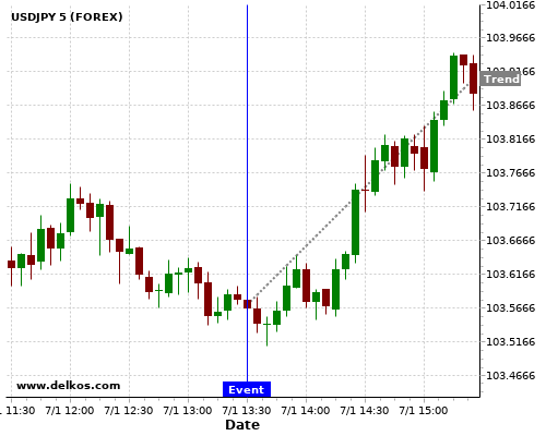 这个可能性是根据最近12次公布US Continuing Jobless Claims数据得出的,12次中有11次真实数据小于专家预期,这其中有8次导致USDJPY上涨。
