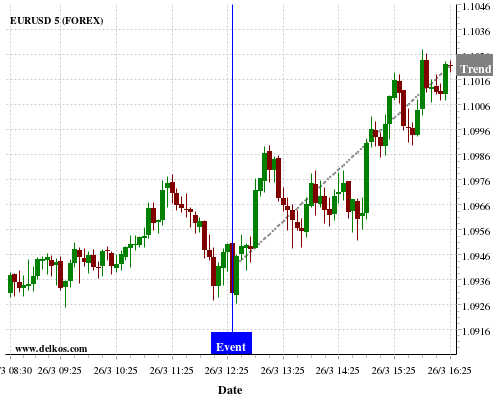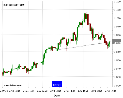 如果该数据大于专家预期,那么EURUSD在消息公布之后的四小时内,将有75%的可能性会上涨。