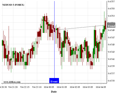 如果该数据大于专家预期,那么NZDUSD在消息公布之后的四小时内,将有83.33%的可能性会上涨。