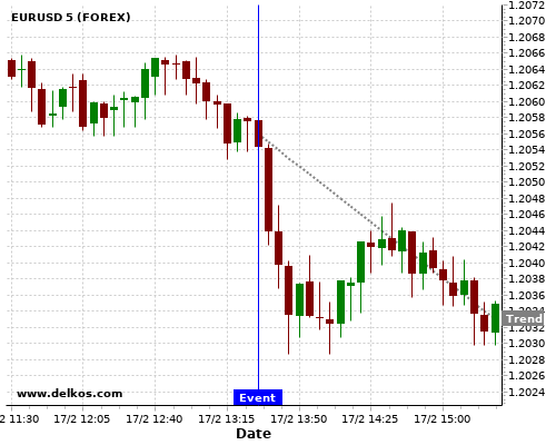 如果该数据大于专家预期,那么EURUSD在消息公布之后的四小时内,将有75%的可能性会下跌。