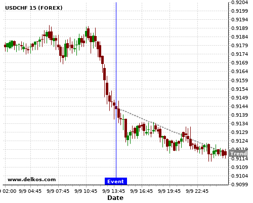 这个可能性是根据最近12次公布CA BoC Interest Rate Decision数据得出的,12次中有11次真实数据等于专家预期,这其中有8次导致USDCHF下跌。
