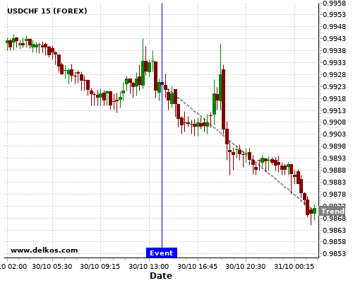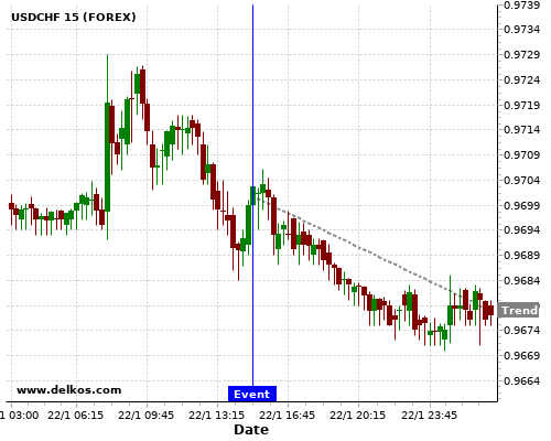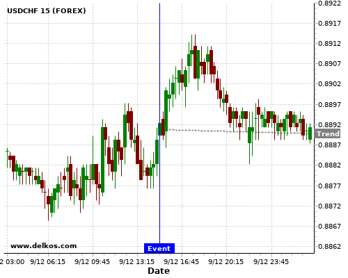 这个可能性是根据最近12次公布CA BoC Interest Rate Decision数据得出的,12次中有11次真实数据等于专家预期,这其中有8次导致USDCHF下跌。