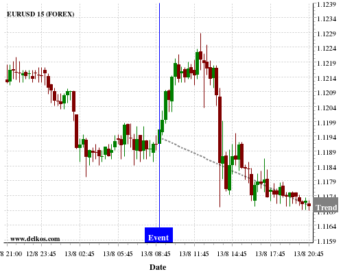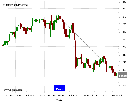 如果该数据小于专家预期,那么EURUSD在消息公布之后的四小时内,将有83.33%的可能性会下跌。