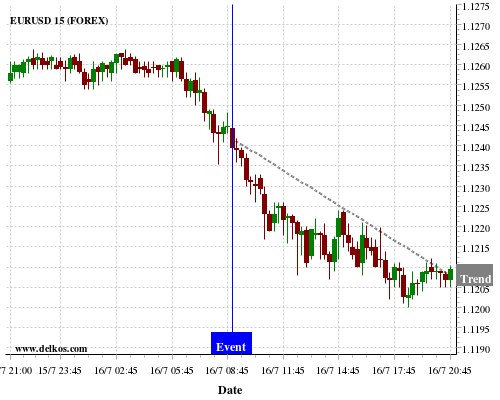 这个可能性是根据最近12次公布DE ZEW Economic Sentiment Index数据得出的,12次中有6次真实数据小于专家预期,这其中有5次导致EURUSD下跌。