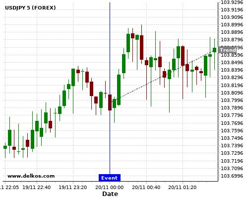 这个可能性是根据最近12次公布GB Gfk Consumer Confidence数据得出的,12次中有9次真实数据大于专家预期,这其中有7次导致USDJPY上涨。