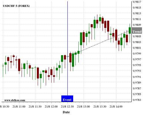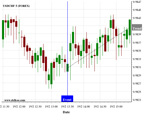 如果该数据大于专家预期,那么USDCHF在消息公布之后的四小时内,将有75%的可能性会上涨。