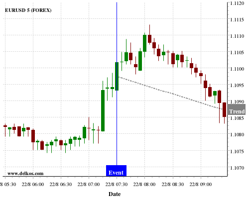 如果该数据大于专家预期,那么EURUSD在消息公布之后的四小时内,将有83.33%的可能性会下跌。