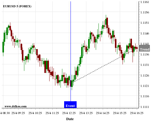 如果该数据大于专家预期,那么EURUSD在消息公布之后的四小时内,将有87.5%的可能性会上涨。