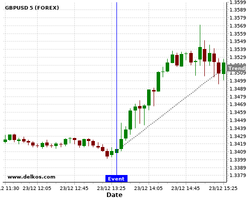 如果该数据大于专家预期,那么GBPUSD在消息公布之后的四小时内,将有75%的可能性会上涨。