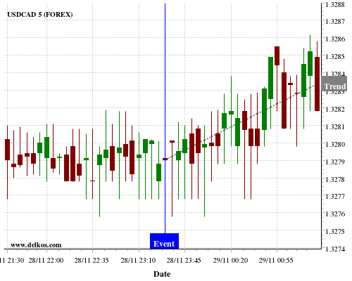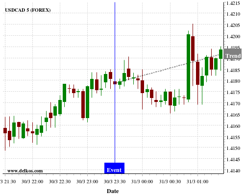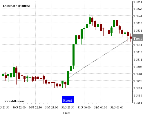 如果该数据等于专家预期,那么USDCAD在消息公布之后的四小时内,将有75%的可能性会上涨。