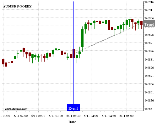 这个可能性是根据最近12次公布AU RBA Interest Rate Decision数据得出的,12次中有11次真实数据等于专家预期,这其中有8次导致AUDUSD上涨。