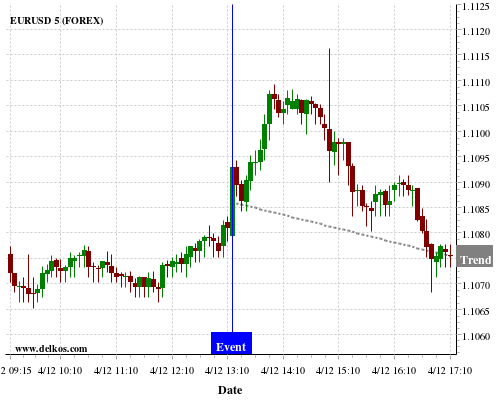 如果该数据小于专家预期,那么EURUSD在消息公布之后的四小时内,将有75%的可能性会下跌。