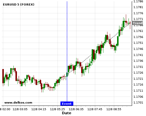 这个可能性是根据最近12次公布GB Balance of Trade数据得出的,12次中有6次真实数据大于专家预期,这其中有5次导致EURUSD上涨。