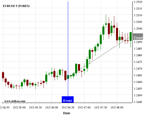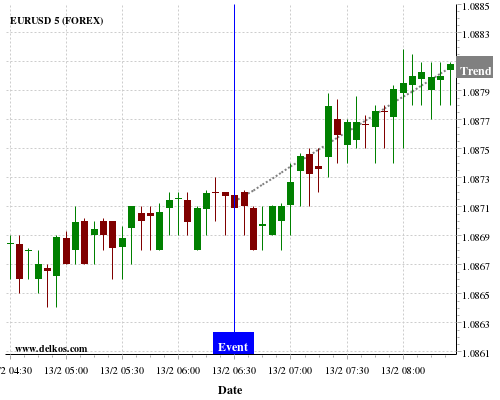 如果该数据小于专家预期,那么EURUSD在消息公布之后的四小时内,将有75%的可能性会上涨。