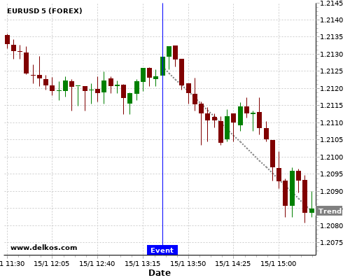 这个可能性是根据最近12次公布US Retail Sales MoM数据得出的,12次中有7次真实数据小于专家预期,这其中有5次导致EURUSD下跌。