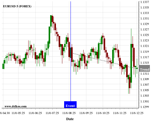 如果该数据大于专家预期,那么EURUSD在消息公布之后的四小时内,将有80%的可能性会下跌。