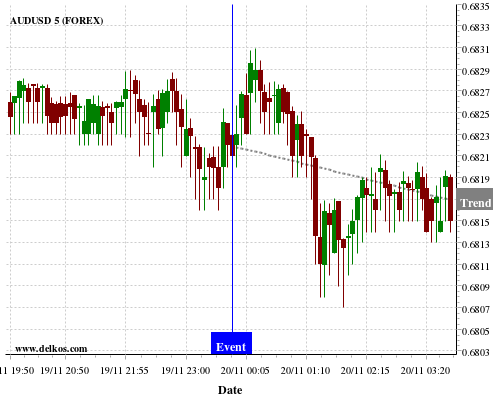 如果该数据小于专家预期,那么AUDUSD在消息公布之后的四小时内,将有83.33%的可能性会下跌。