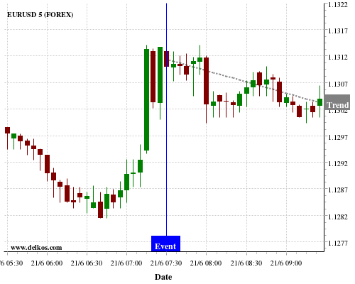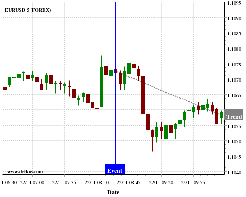 这个可能性是根据最近12次公布DE Markit Manufacturing PMI Flash数据得出的,12次中有6次真实数据大于专家预期,这其中有5次导致EURUSD下跌。