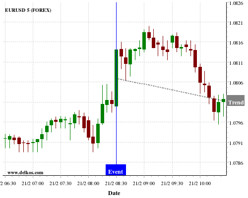 如果该数据大于专家预期,那么EURUSD在消息公布之后的四小时内,将有83.33%的可能性会下跌。