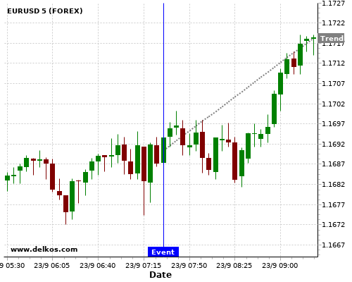 这个可能性是根据最近12次公布DE Markit Manufacturing PMI Flash数据得出的,12次中有10次真实数据大于专家预期,这其中有7次导致EURUSD上涨。