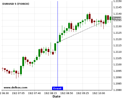 如果该数据大于专家预期,那么EURUSD在消息公布之后的四小时内,将有70%的可能性会上涨。