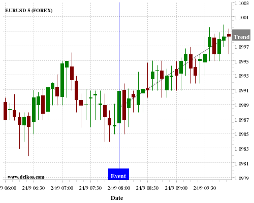 如果该数据大于专家预期,那么EURUSD在消息公布之后的四小时内,将有80%的可能性会上涨。