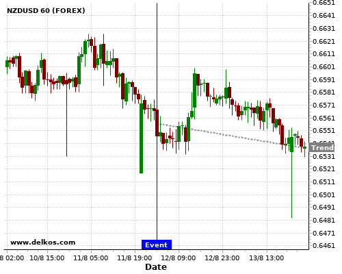 如果该数据等于专家预期,那么NZDUSD在消息公布之后的四小时内,将有77.77%的可能性会下跌。