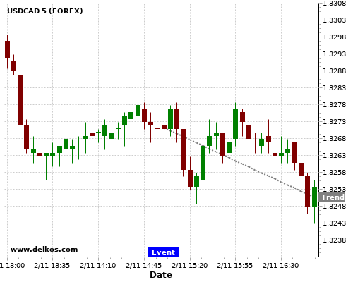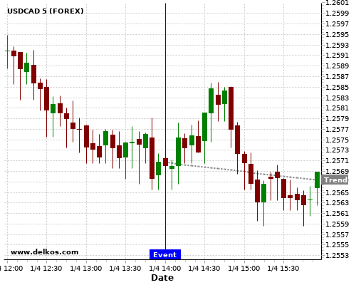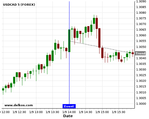 如果该数据大于专家预期,那么USDCAD在消息公布之后的四小时内,将有85.71%的可能性会下跌。
