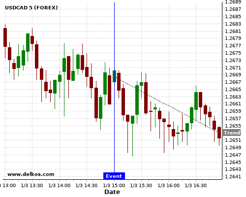 这个可能性是根据最近12次公布US ISM Manufacturing PMI数据得出的,12次中有7次真实数据大于专家预期,这其中有6次导致USDCAD下跌。