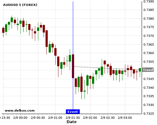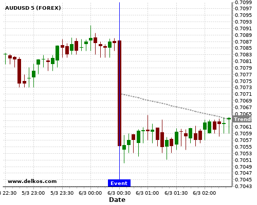 如果该数据小于专家预期,那么AUDUSD在消息公布之后的四小时内,将有80%的可能性会下跌。