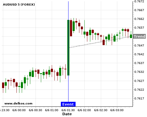 如果该数据大于专家预期,那么AUDUSD在消息公布之后的四小时内,将有75%的可能性会上涨。