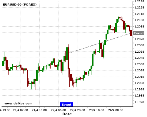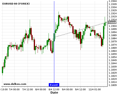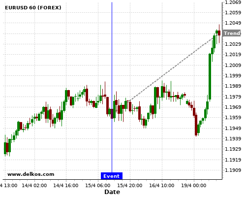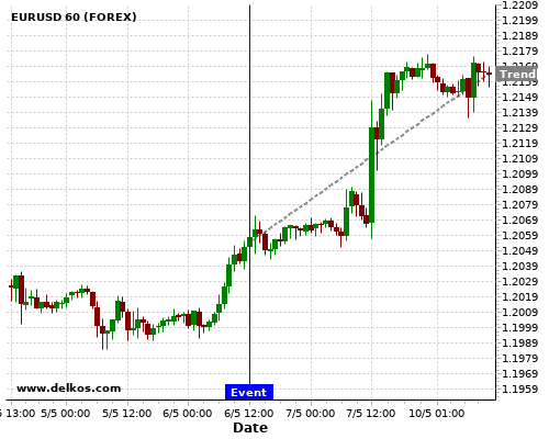如果该数据大于专家预期,那么EURUSD在消息公布之后的四小时内,将有87.5%的可能性会上涨。