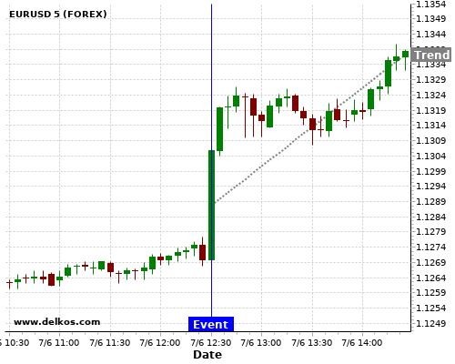 如果该数据小于专家预期,那么EURUSD在消息公布之后的四小时内,将有80%的可能性会上涨。
