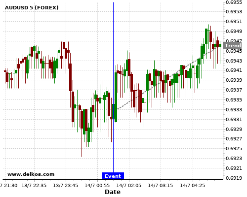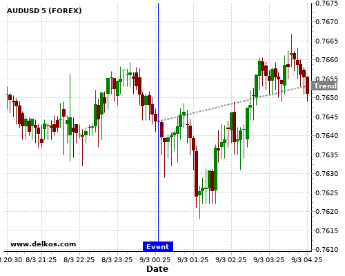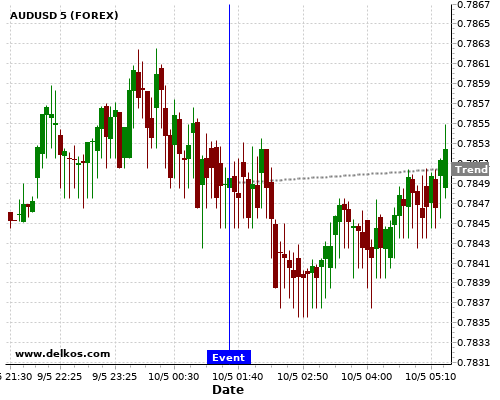 如果该数据大于专家预期,那么AUDUSD在消息公布之后的四小时内,将有77.77%的可能性会上涨。