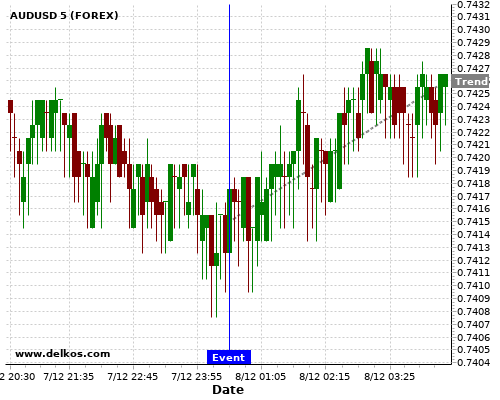 这个可能性是根据最近12次公布AU NAB Business Confidence数据得出的,12次中有9次真实数据大于专家预期,这其中有7次导致AUDUSD上涨。
