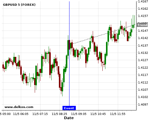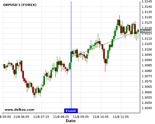 如果该数据大于专家预期,那么GBPUSD在消息公布之后的四小时内,将有87.5%的可能性会上涨。